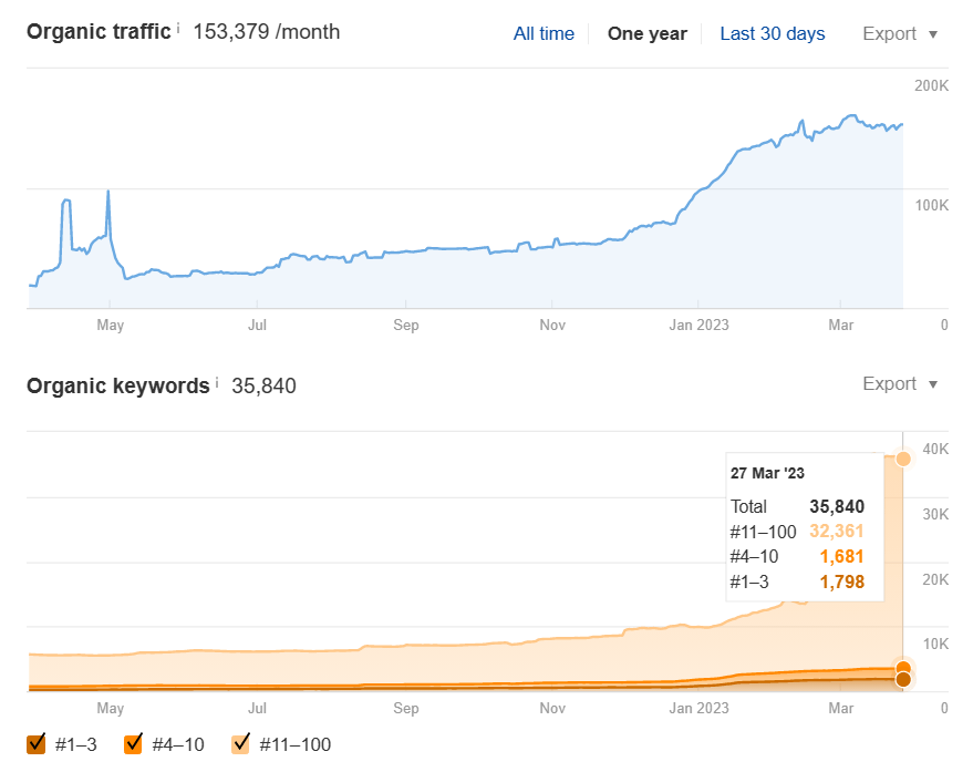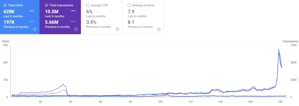 Overall, our SEO campaign has delivered tangible results, including a substantial increase in organic traffic month over month, an increase in organic keywords appearing in search results with over 1.8K keywords in top 3 positions, and a total of 10.5 million impressions and 628K clicks on Google over a 6-month period. This should ultimately help the charity NGO reach more donators around the MENA region and receive more support for their cause.