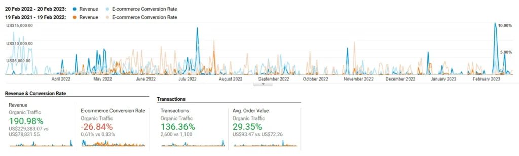 SEO optimization work done by our team for this charity NGO! Our solutions for solving critical on-page SEO issues, improving website speed, optimizing content and internal pages, optimizing all campaigns for SEO, conducting keyword research for targeted keywords and competitors, and enhancing the backlink profile have resulted in significant increases in organic traffic and keywords appearing in search results.